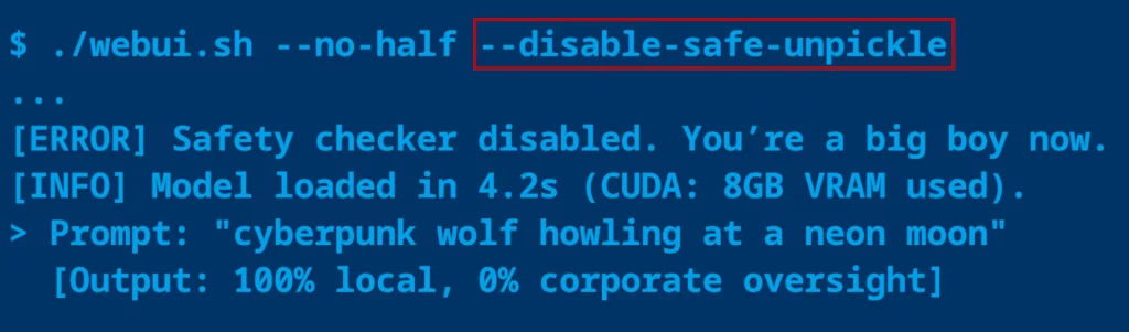 Übersetzung: –disable-safe-unpickle = „Lass mich mein verdammtes Modell benutzen.“